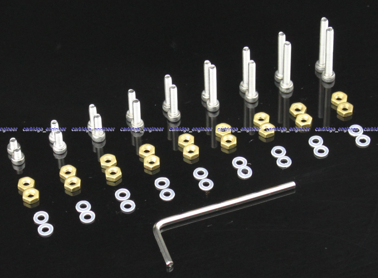 New 50sets/lot Mounting stainless steel screw, brass nut and nylon washer kits